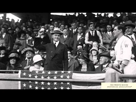 FDR throwing out the first pitch, 1933 World Series; Note there is a staff person holding him up